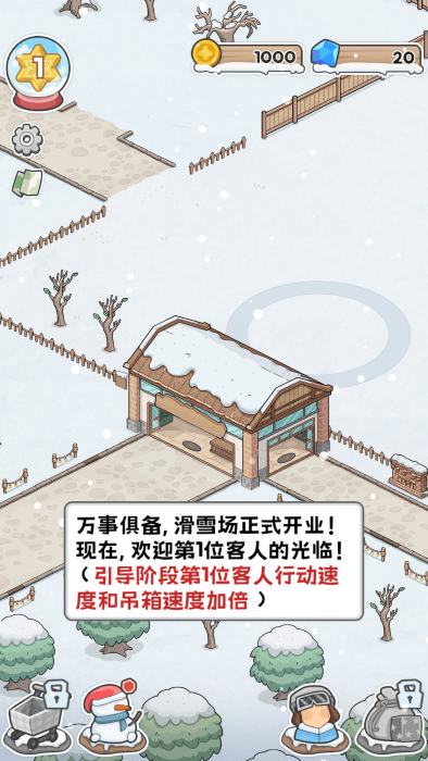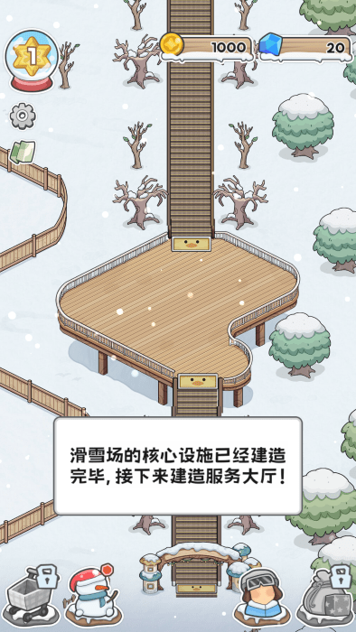 游戏开始时,系统会赠送一块基础滑雪场地,玩家只需轻点屏幕即可逐步熟悉操作界面与核心流程。整个引导过程简洁直观,即使是初次接触经营类游戏的玩家也能迅速掌握节奏,投入到雪场建设的乐趣中。