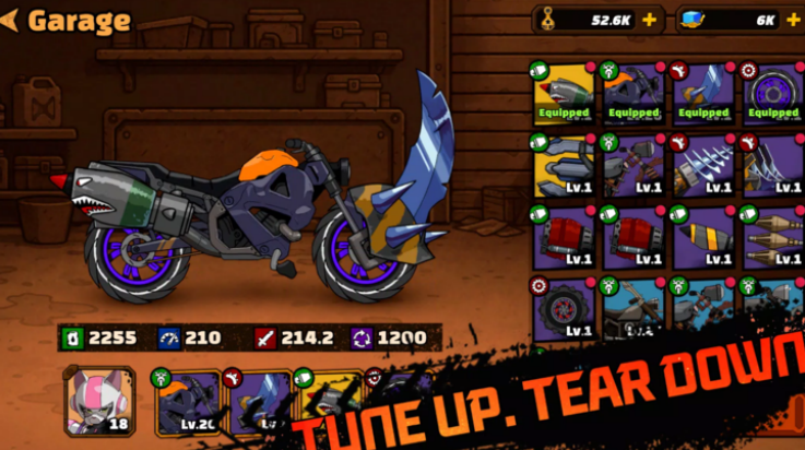 通过完成任务与探索地图,收集海量摩托车零件——从引擎、轮胎到装甲与武器模块,自由组合搭配,打造出兼具性能与视觉冲击力的末日战车。