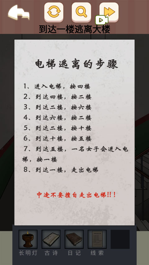 3、抵达9楼时获取古诗线索,其中暗含长明灯”的关键提示。