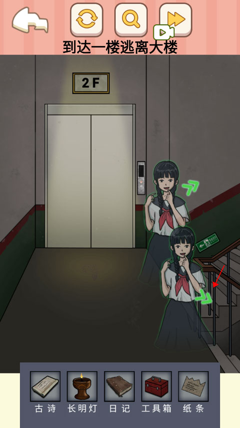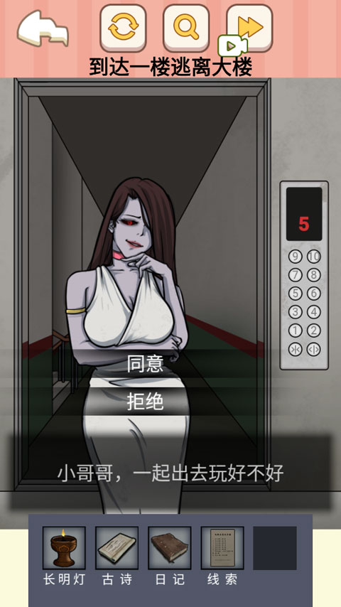 9、即使在5楼遭遇神秘女子,也无需理会;直接点击1楼按钮,即可成功逃离。