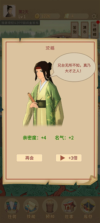 3、更好的发展自己的店铺可以解锁出更多不同的情况,玩家可以更轻松的碰到各种历史名人,与他们进行结交,解决各种难题