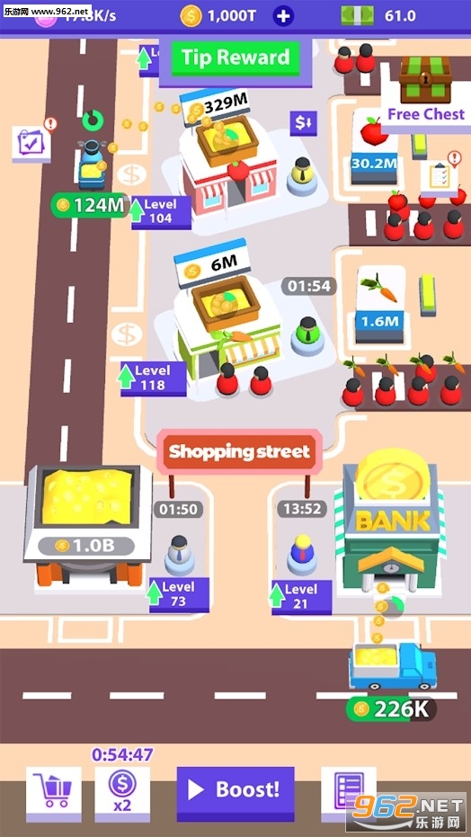 总体来说是一款有趣的放置休闲类游戏,拥有着可爱的3D卡通画面,简单的点击去经营你的超市,操作性不高主要是手指的点击,在无聊的时候打发时间而已,有店员的管理系统等等,喜欢的亲们赶紧下载吧。