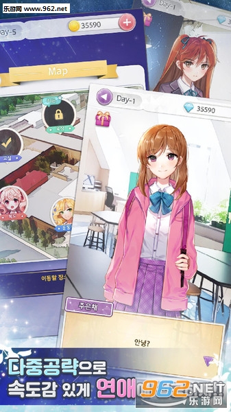 动漫次元风格的画面和人设打造,多样化的剧情内容,解锁与不同人物之间的关系,攻略更多小姐姐。