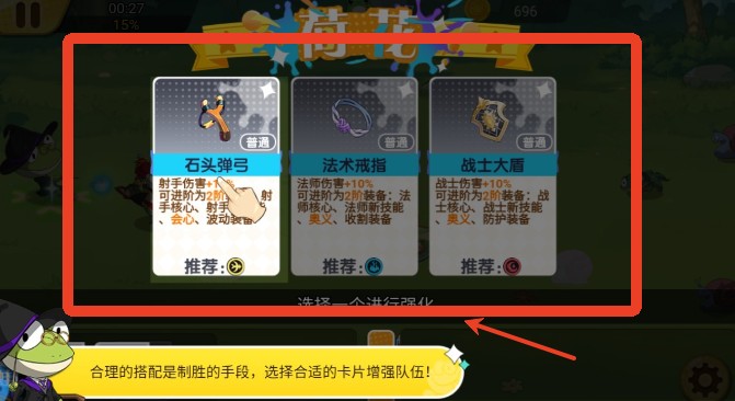 每完成一个关卡,系统都会提供卡牌强化选项,帮助你优化阵容、提升战力,为后续挑战做好准备。