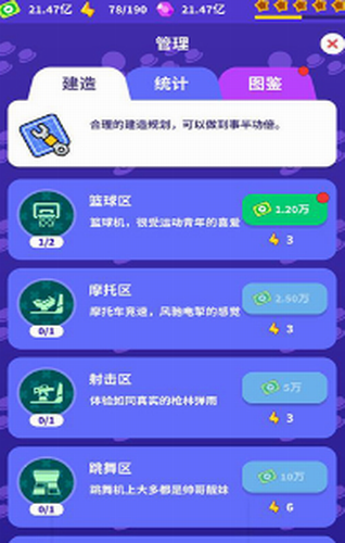 2. 设有街机区、赛车区、舞蹈区、VR虚拟现实区等不同主题区域,各区定价策略各异,考验你的经营智慧;