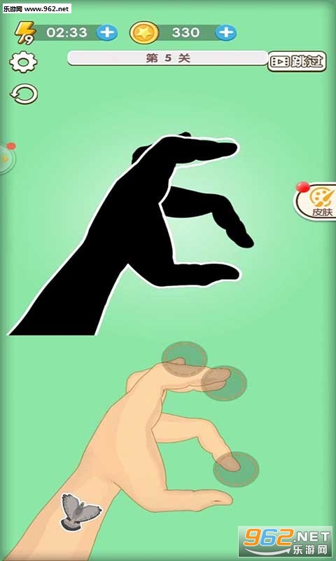3、手影的模型多种多样,有的是动物的,也有别的类型的,尝试完全匹配你的手指位置,就能快速的成功。