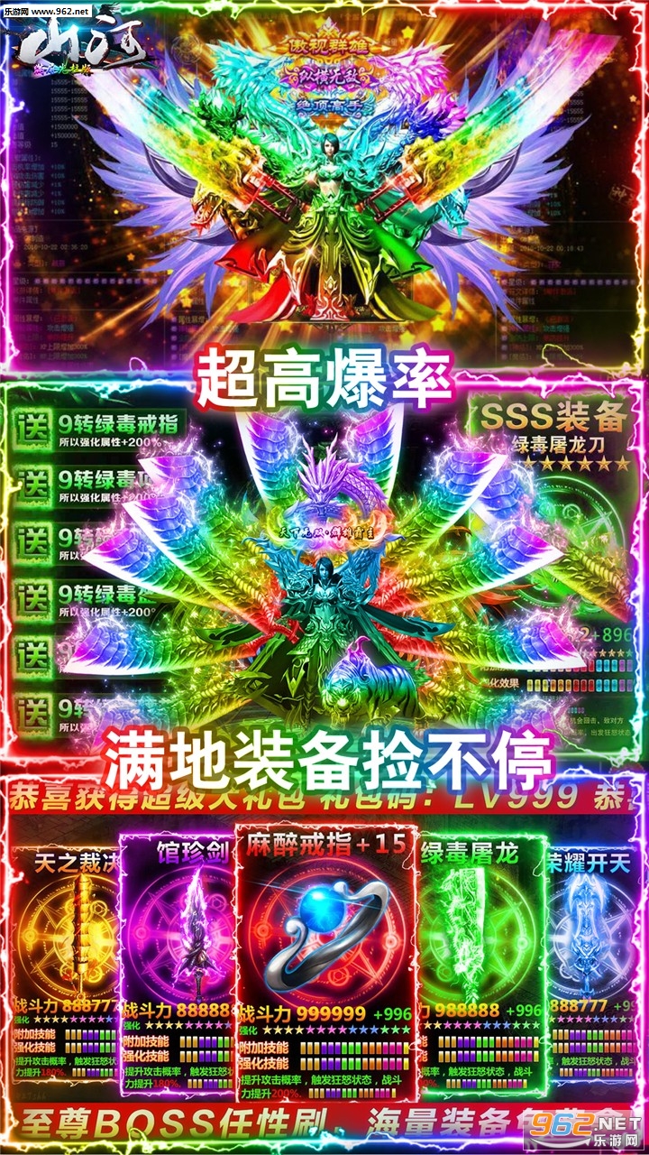 战·亦法道,三位一体,在游戏中玩家可自由切换三职业天赋技能,让战斗更加充满乐趣。激战BOSS,无限刷宝,给玩家一刀秒爆,满地神装、元宝的爽快体验。无兄弟,不传奇!