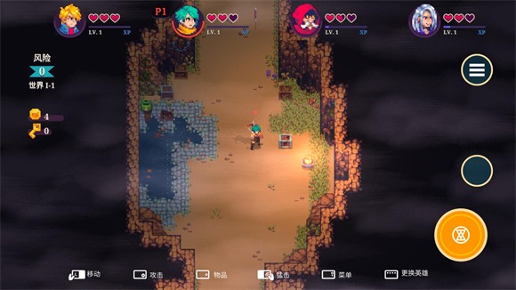 游戏支持单人与四人联机两种核心模式。在单人模式中,玩家需同时操控全部四位英雄,合理分配技能与走位,考验战略思维与操作精度;而在多人联机模式下,你可与好友组队,分工协作,共同破解机关、击败强敌,享受高度互动的团队冒险体验。