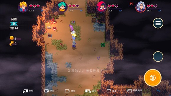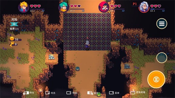 5、正式开始冒险后,左侧虚拟摇杆控制移动,右侧黄色按钮用于普通攻击。