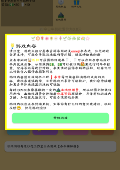 养牛模拟器手机版是一款融合策略经营与深度养成的休闲模拟游戏,以清新卡通画风搭配创新文字交互玩法,带你从零开始打造属于自己的现代化牧场帝国。在游戏中,你不仅要悉心照料每一头小牛的成长,还需科学规划牧场布局、拓展产业链条,通过升级设施、优化运营,实现从牧场主到牛肉大亨的华丽蜕变。离线也能持续收益,轻松放置中体验真实又魔性的养牛人生!