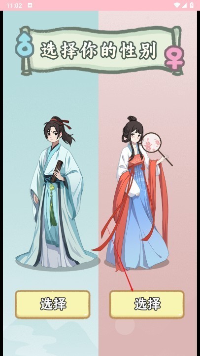 进入游戏后,首先选择你的人物性别,开启专属穿越之旅。这一步不仅决定角色外观,也会影响后续剧情发展。