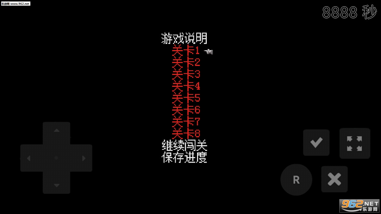 1、全游戏共8关,每次过关可以存档一次。