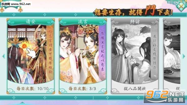 这时候,玩家可以拉帮结派树立威信,也可以请安问候抱大腿,斗争手段数不胜数。随着玩家在后宫品级的提升,还可以乾脆将看着不顺眼的贱妃小人打入冷宫!
