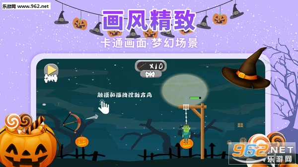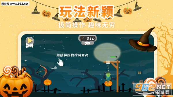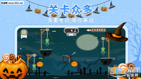 这是一款非常有意思的休闲射击手游。游戏中我们需要操作弓箭射断绳索,拯救被吊在木桩上的怪物。还在等什么?成为最好的神射手吧。