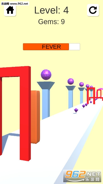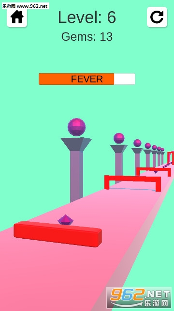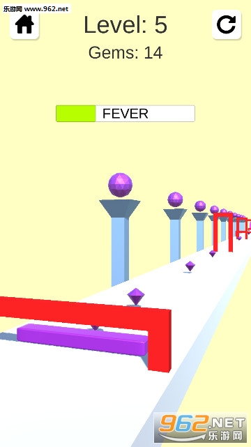 1、控制果冻在不同的跑道上到处冲刺,小心前进过程中的各种门洞障碍物;