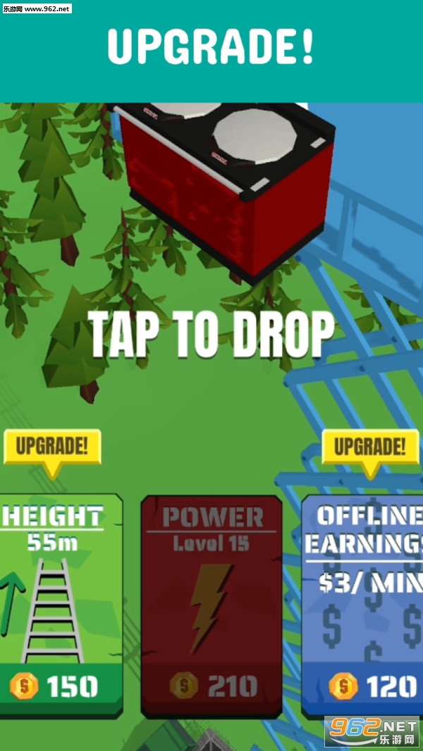 一款玩法非常休闲的游戏,玩家要从高处往下以自由落体的形势扔东西,砸坏放在下面的物体。非常简单的玩法,点击即可开始落体,轻松解压。从锤子、水壶,到煤气灶、冰箱,什么都能扔下去,非常无厘头。