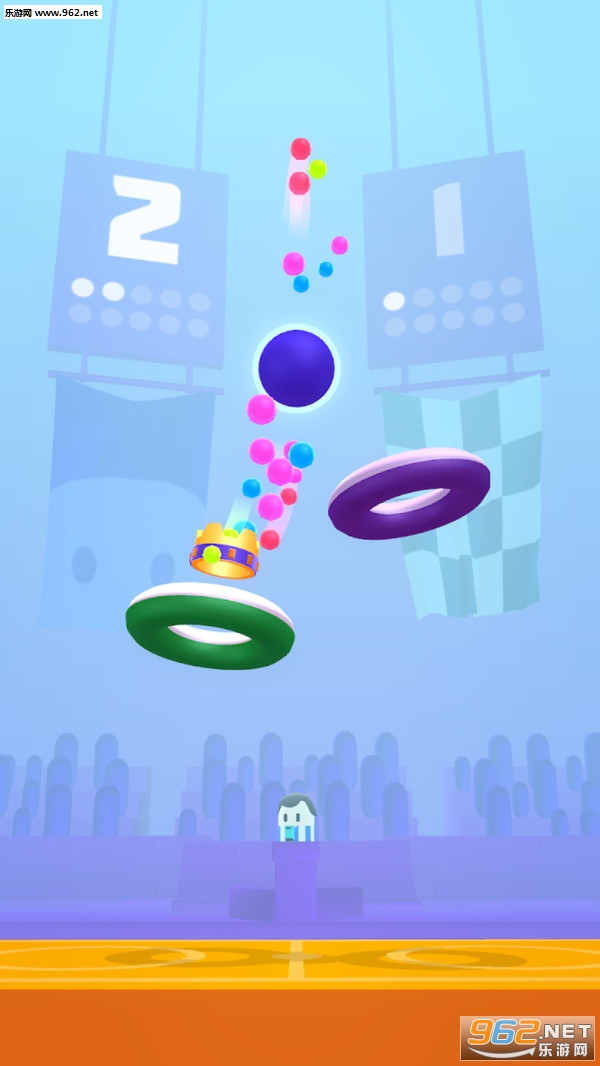 一款非常有趣的休闲游戏,游戏采用简约的画面风格,在球场上大家需要让小球正好穿过圆环,不断地收集奖杯获得更高的分数,超魔性的体验感轻松获得最终胜利。