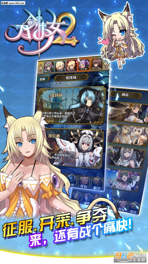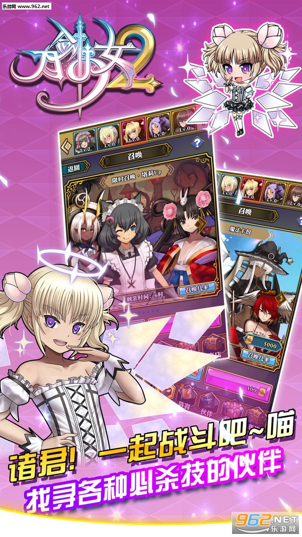 《刀剑少女2》是一款二次元美少女策略收集游戏,上百位美少女等你选召!组建自己最强的战女天团,参与众神之战,最终打败邪神,拯救人类世界。唯美的日系画风,优美的背景音乐,史诗的剧情关卡,鲜明的个性少女,多样的培养方向,暴爽的阵法战斗,丰富的游戏活动,让玩家游戏完全停不下来!