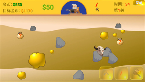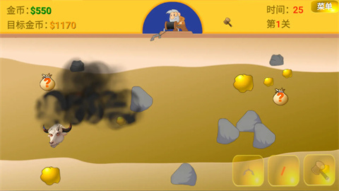 1、在土地下面的东西都可以抓得到。随着关卡的往后。会出现钻石等贵重的物品。当然石头也是可以抓住。不过是浪费时间