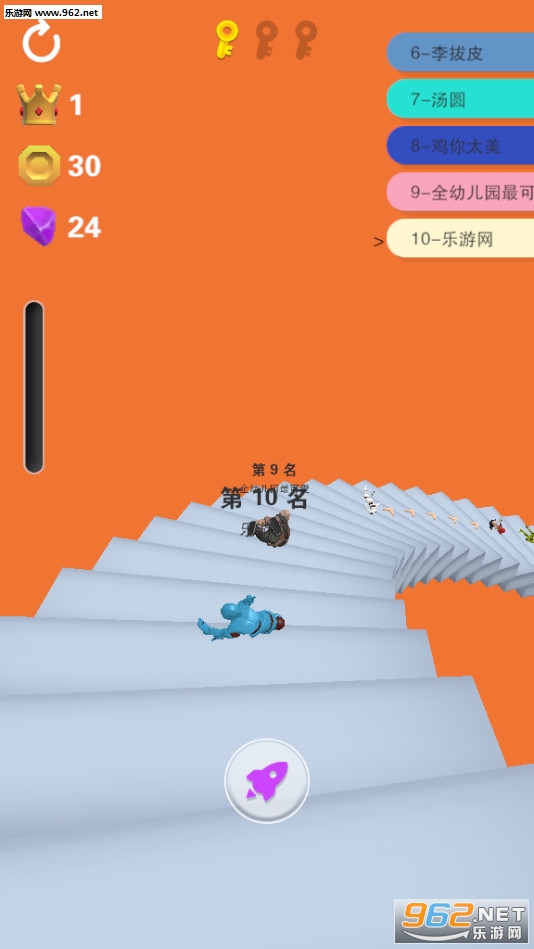 争做第一个到达楼梯终点的人!下滑过程中还可以撞开其他玩家,飞出轨道走捷径,尽情享受飞人般楼梯下滑的乐趣。