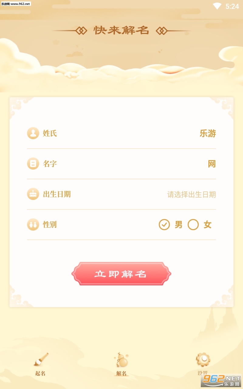 7、专业大师解名:输入您的性别、姓氏、名字、具体出生时间,即可进行八字精准解名。