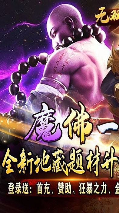 全新传奇手游,免费打金、全新西游地藏题材新版本全面来袭,进游选择佛魔任意职业,结合了神器、切割、地藏等玩法,炫丽的技能秀翻全场,精准的打击斗智斗勇,剧情丰富有搞头,技能特效有讲究,战斗冒险纵横驰骋,热血的战斗为你带来超爽的体验!快快加入吧与兄弟们征战吧!