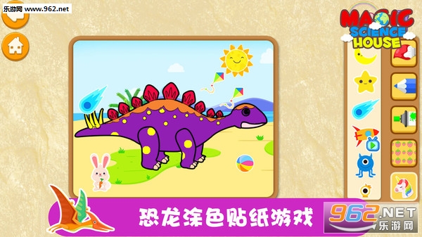 恐龙认知互动游戏应用,通过有趣的恐龙喂食游戏,恐龙户外考古和实验室游戏,恐龙骨骼拼图游戏、涂色贴纸游戏、挖掘机驾驶游戏等,同时配合极具亲和力的语音介绍和生动的恐龙叫声,让孩子们认知世界上最受欢迎的、形态各异的30种恐龙,了解不同恐龙生活的史前时代、形体特征、食物偏好等。