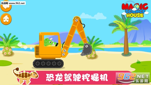 操作恐龙驾驶挖掘机、消防车、潜水艇等,享受驾驶乐趣;