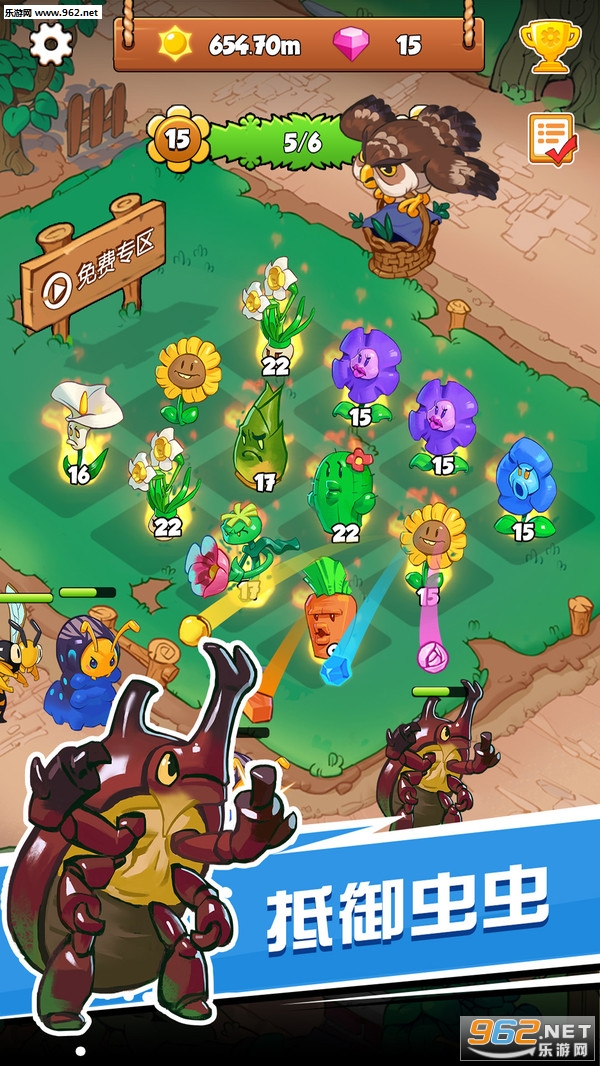 保卫花花拥有十分精彩美丽的游戏画面,游戏玩法和植物大战僵尸相类似的游戏,但是这里的僵尸变成了害虫它们想要入侵花花的家园,你需要通过不断放置合成花花和植物来强健你的防御,击退这些害虫入侵者,感兴趣的朋友就来下载体验!