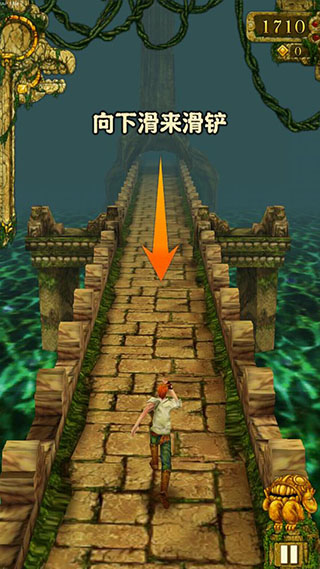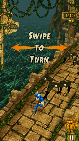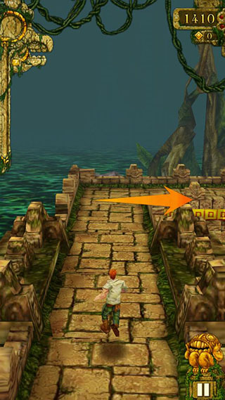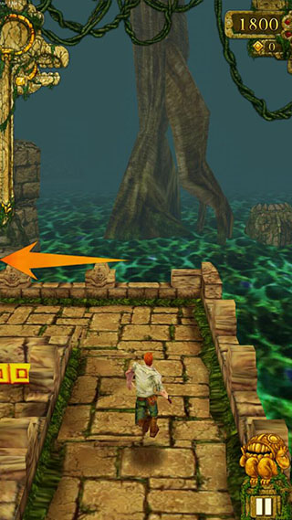 第二种:第二种方法并没有提到需不需加速道具,只是说在遇到悬崖时,玩家可以直接跳下去,但是在跳下去的同时手机要倾斜一下,这样也有几率可以触发这个Temple run Bug。