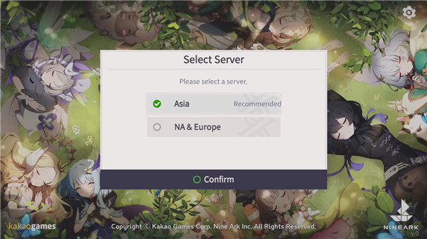 1、下载好游戏后,点击进入首先就是服务器选择,上面是亚洲服务器(建议选择整个),下方是美洲和欧洲服务器。