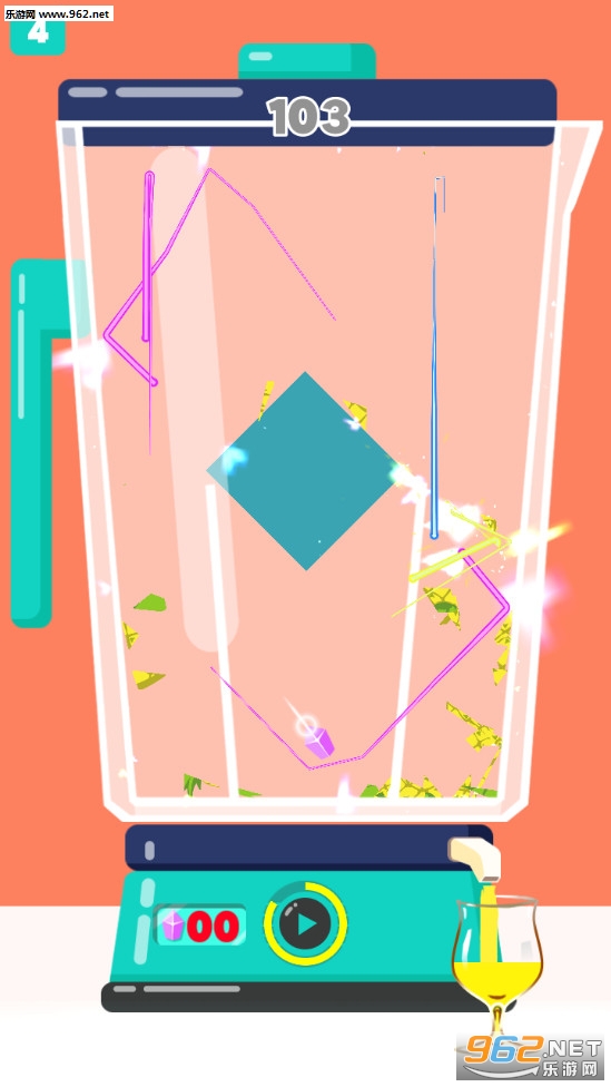 非常酷爽的一款榨汁机模拟游戏,玩家在游戏中可以用各种水果进行榨汁,水果摆放的关卡和障碍不一样,选择合适的激光线来进行榨汁吧。