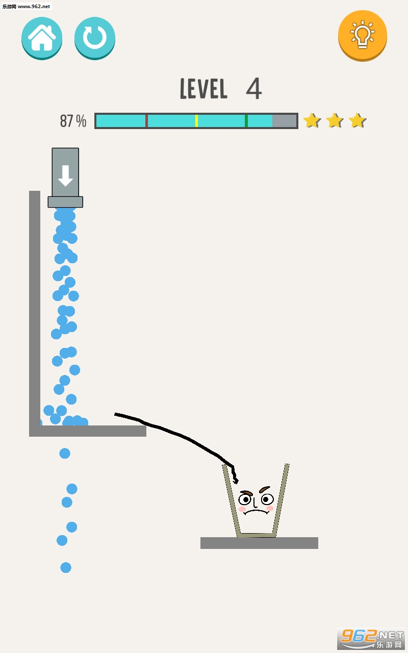 总体来说是一款非常有趣的物理画线闯关的游戏,游戏操作起来的玩法简单易上手,灵活的使用手指点击画出线段让水流顺着线段进入玻璃杯中即可,玩起来的操作感还是很有趣的哦,喜欢的亲们赶紧下载吧。
