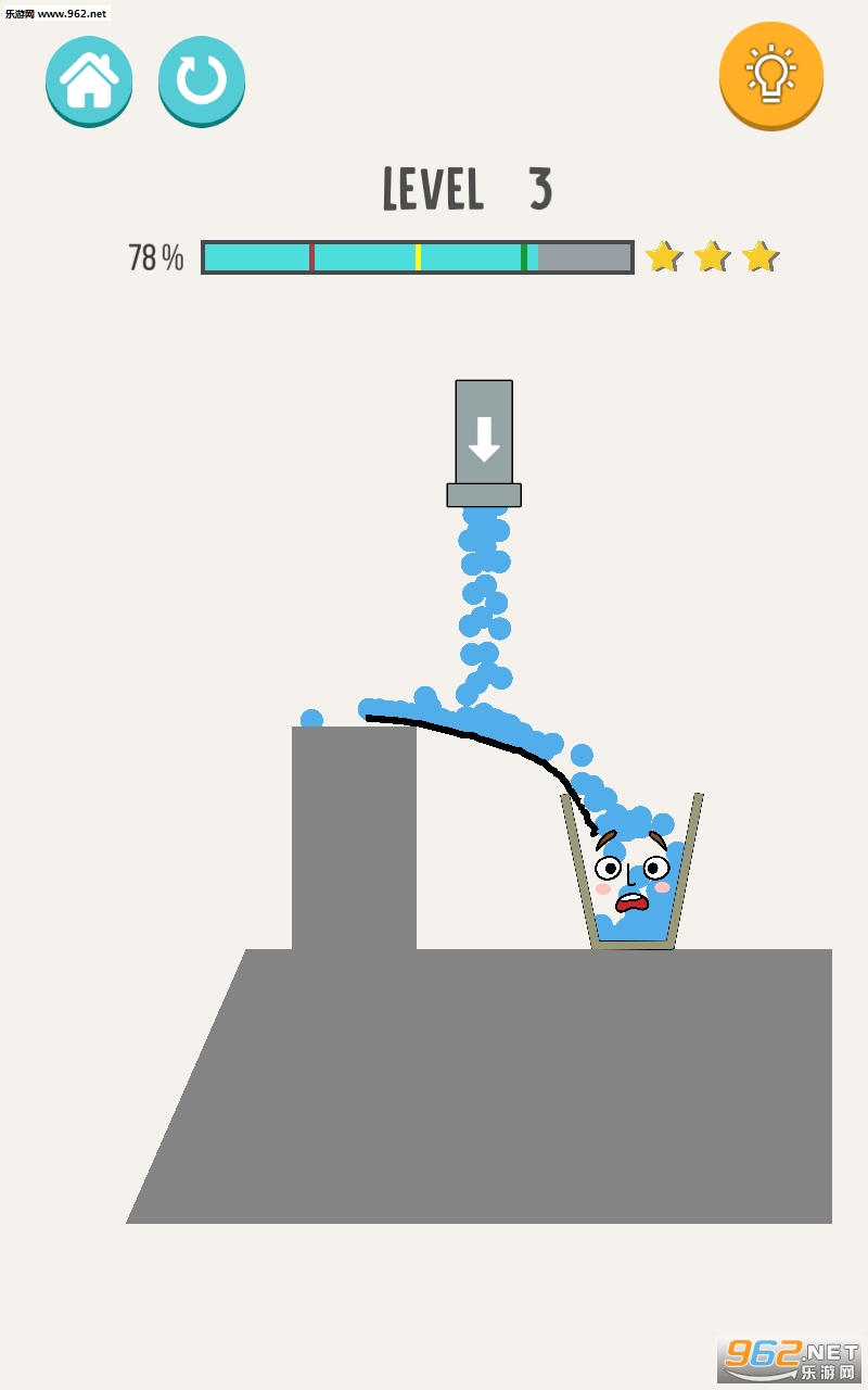 1、关卡的成就总共有着三颗星的评级,你装的水越满,评分就会越高;