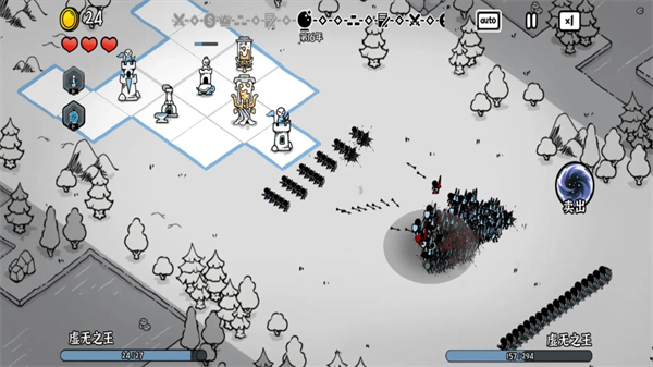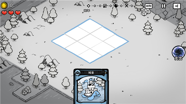卡牌升级依赖碎片积累,通过点击国王头像进入升级界面,尤其第5级时战力跃升显著。卡牌类型可通过左上角图标识别:小人代表部队卡,漩涡为魔法卡,小锤子是辅助卡,其余则为防御建筑。城堡攻击默认手动操作,点击屏幕任意位置即可指定攻击目标,开启上方Auto”按钮可切换自动攻击模式。