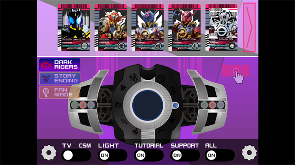 6. 再次点击变身器侧边,合上装置,即可触发完整变身动画,成为真正的黑暗帝骑!