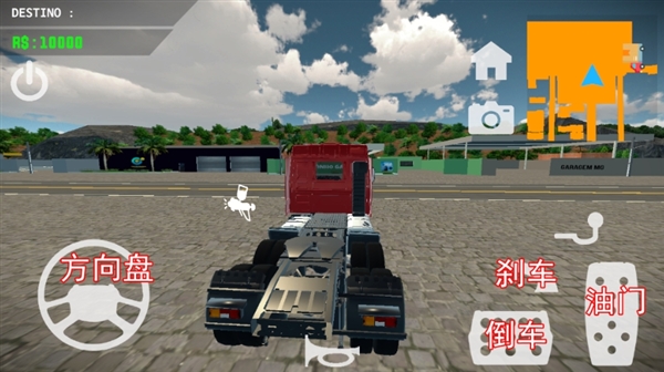 游戏界面简洁清晰,新手也能快速掌握核心操作。左下角为虚拟方向盘,右下角集成油门、刹车与喇叭功能,右上角实时显示任务地图,指引装货点与目的地。此外,点击小房子图标即可进入设置界面,自由调整操控布局,适配个人驾驶习惯。
