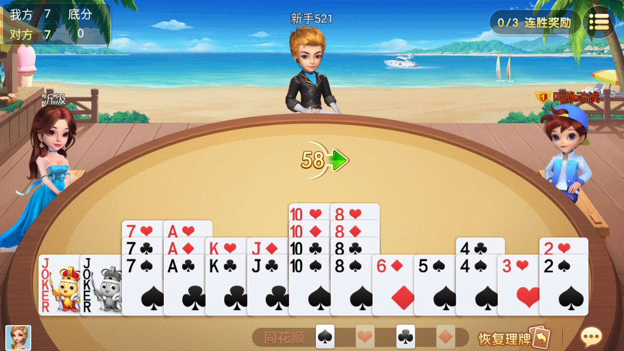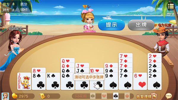 游戏独创同花顺智能筛选功能:当花色提示高亮时,轻点一下即可自动选中完整同花顺,大幅提升出牌效率与竞技体验,助你稳坐掼蛋王”宝座。