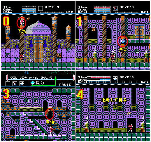 0.叫鹰去击打入口左边的高塔,可发现圣水瓶。(每关都有)