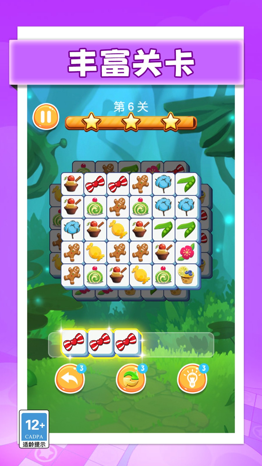 3. 每个关卡设置特定通关条件,包括在限定步数内清除目标色块、使特定物品掉落到底部或炸毁顽固障碍物等。