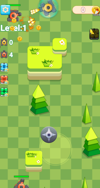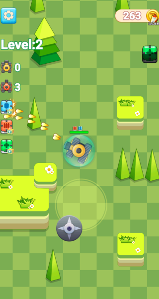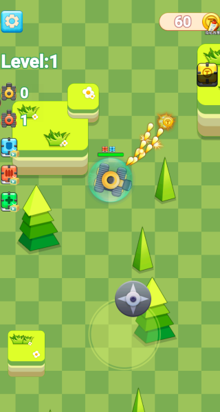 坦克生存赛是一款以快节奏、轻量化对战为核心的休闲坦克射击手游。游戏采用俯视视角操作模式,玩家通过虚拟摇杆控制坦克移动,点击屏幕完成瞄准与射击动作。每局对战时长紧凑,玩家需在躲避密集炮火的同时,快速收集散落的护甲补给、弹药箱及技能道具,并通过击毁敌方坦克获取强化资源。