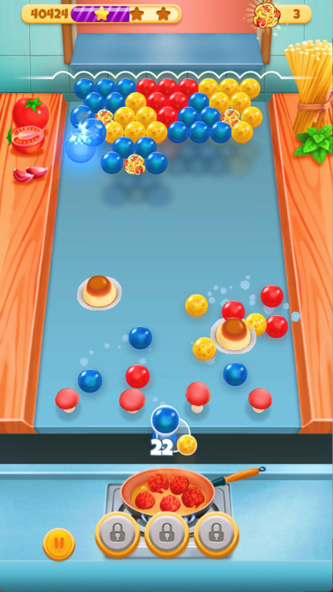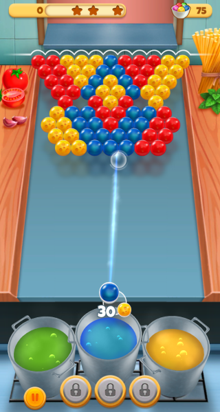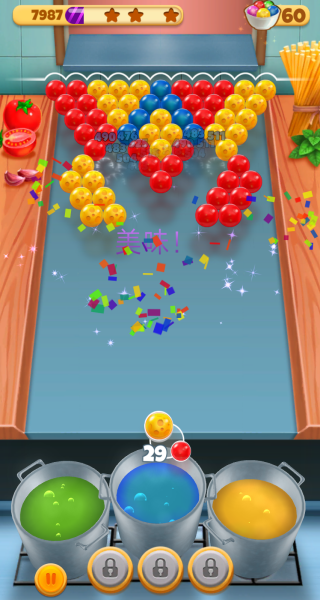 2. 挑战超过300个精心编排的关卡,每个关卡如同定制菜单,要求玩家收集特定组合的食材泡泡才能通关。