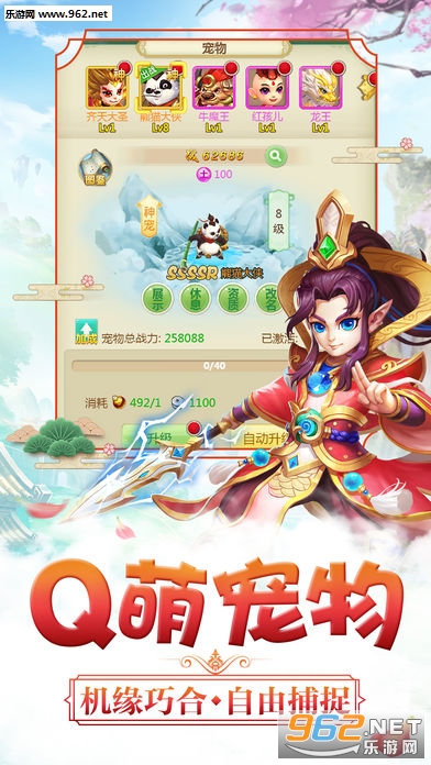 游戏采用3D引擎打造的画面,Q萌可爱的角色设定,专属的养成系统玩法,让你打造自己的角色重新西游之路,霸气萌宠助阵,让你的战斗不再孤单。