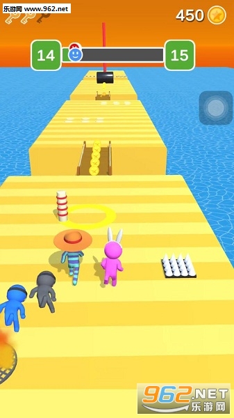 1.游戏的画面色彩非常靓丽,操作非常简单,在跑步中击败其他玩家率先冲破终点获取胜利。