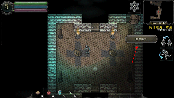使用虚拟摇杆操控角色移动,靠近宝箱时自动触发开启交互。
