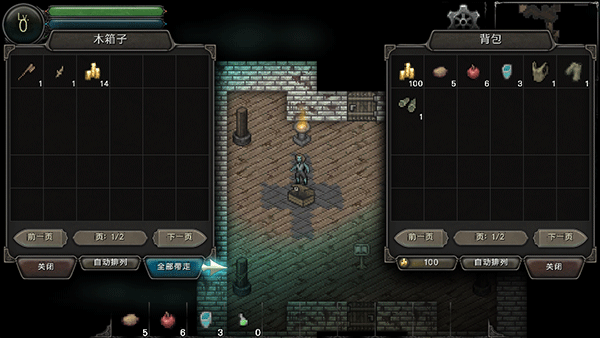 开启宝箱后可获得各类材料,点击即可将其转移至背包。