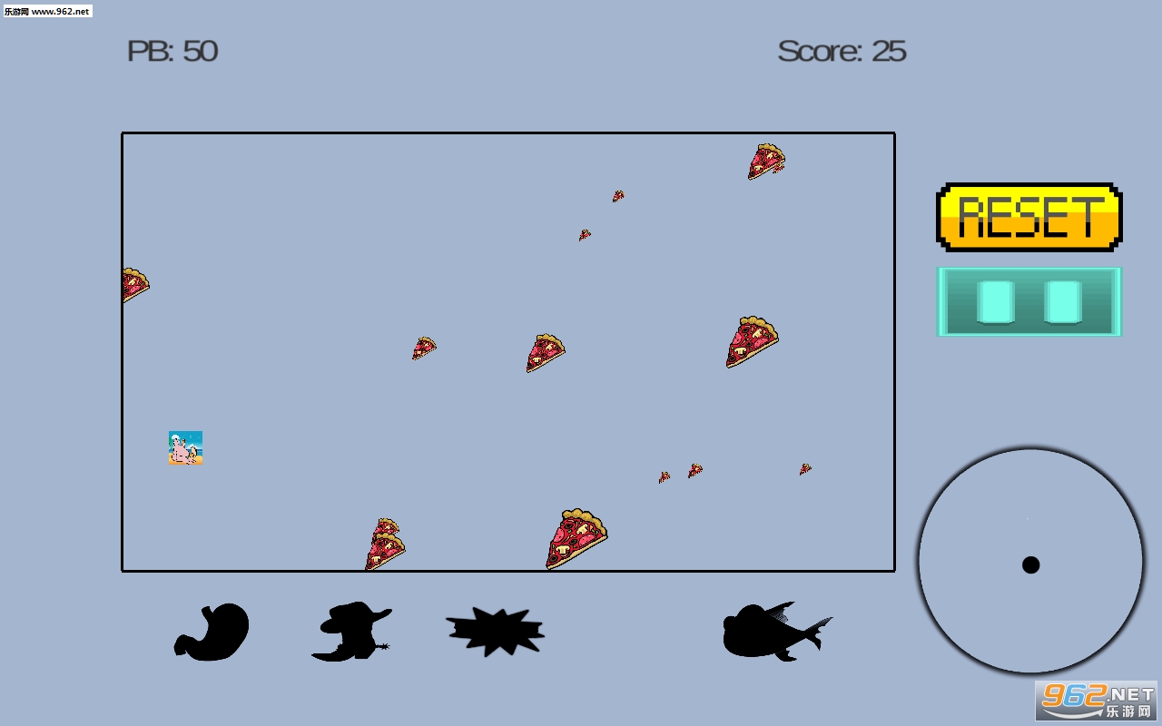 你要消灭掉所有的披萨,游戏进行到后面披萨降落的速度越来越快。