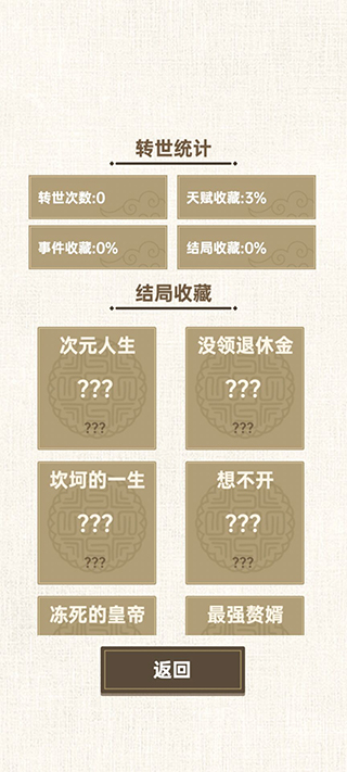 转世皇帝模拟器是一款当前在网络中非常爆火的人生模拟类手游。该游戏主要围绕着转世成皇帝为核心而设计,不仅题材新颖、内容丰富,并且界面清爽简约,全程以文字的方式进行,这里没有任何的角色模型以及场景地图,玩家可以在这里体验不一样的精彩人生。在游戏开局时,玩家可以选择3个随机的天赋,然后还有着属性点等你来分配,而且还可以让你获得更为高品质的天赋和更多的属性点的,其中一些颜值、智力、体质、家境等初始的属性决定了未来人生的走向,比如颜值高的属性往往会成为能够找到更好的后宫佳丽,更是可以解锁非常多的玩法,修仙渡劫在这里也可以体验到,你可以随时随地的尝试各种选择。