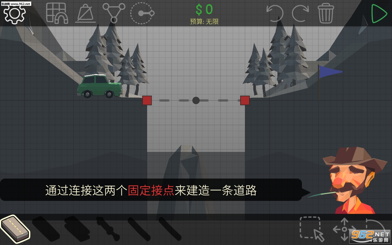 2、每个沙盒地图的特点不同,观察地形搭建新的桥,灵活使用材料。