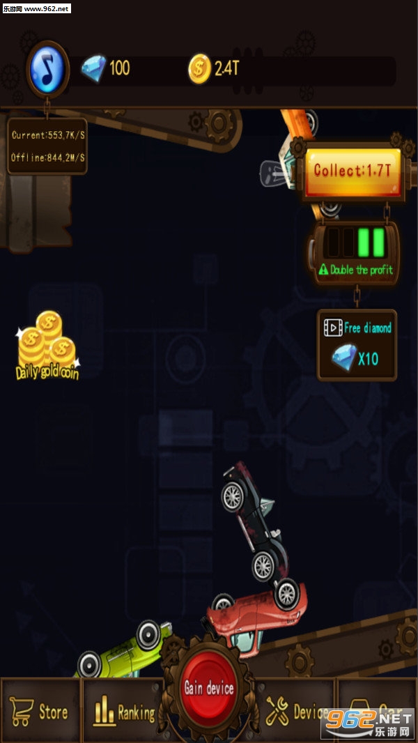 3、每破坏一辆车子就会得到金币,还有大量的钻石任务,钻石可以让你购买大量的工具使用。